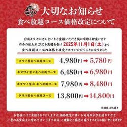 誠に勝手ながら、11月1日より一部メニューの料金を改定させていただきます。